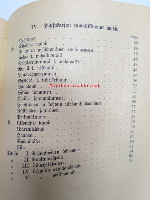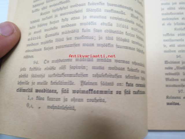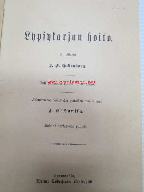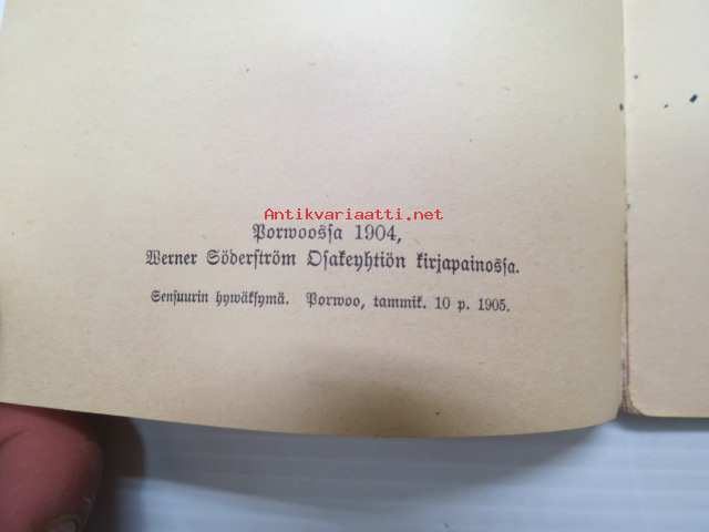 | Saatavilla | 1 kpl | | Julkaisuvuosi | 1904 | | Sivuja | 65 | | Painos | 3. | | Kunto | K2 | | Sidonta/painoasu | Nidottu (pehmeäk.) | | Kielet | Suomi |
