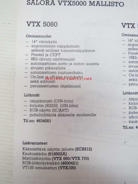 Salora VTX 5000 näyttöpääte -myyntiesite