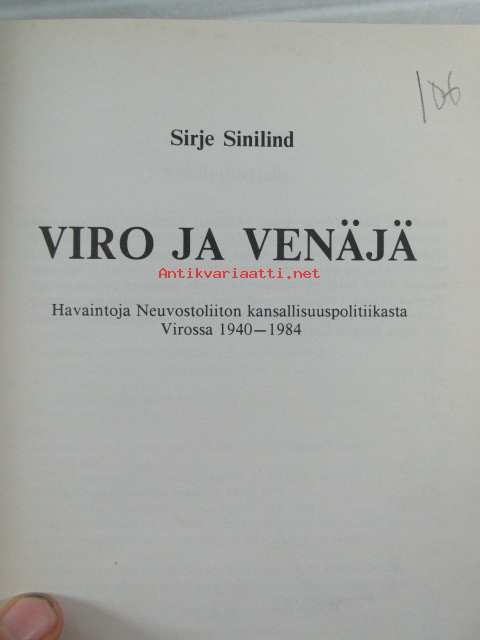 Viro ja Venäjä. Huomioita Neuvostoliiton kansallisuuspolitiikasta Virossa 1940-1984
