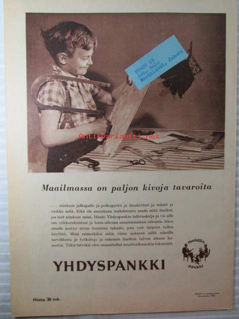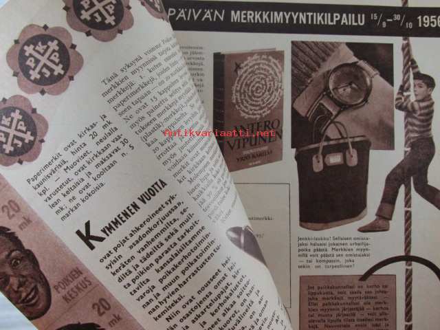 | Saatavilla | 1 kpl | | Julkaisuvuosi | 1956 | | Kunto | K2 | | Sidonta/painoasu | Lehti | | Kielet | Suomi |