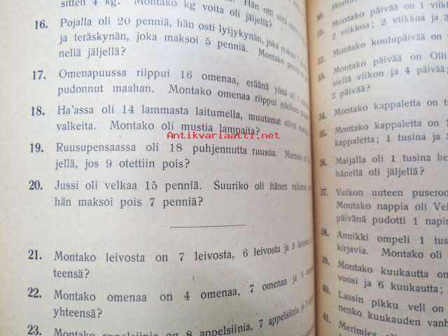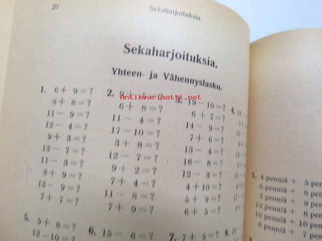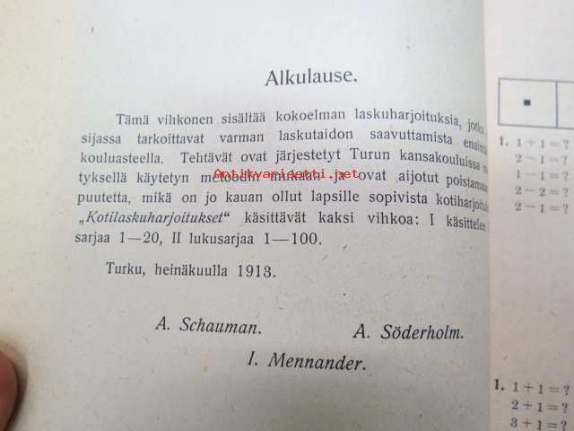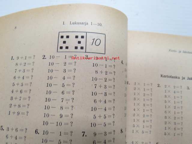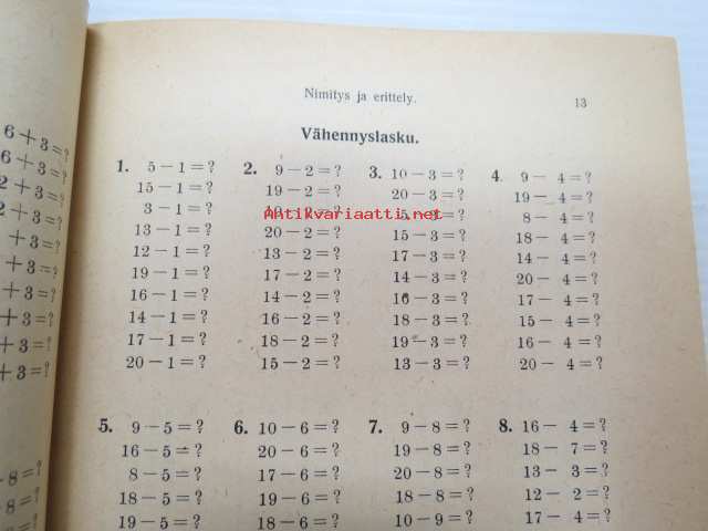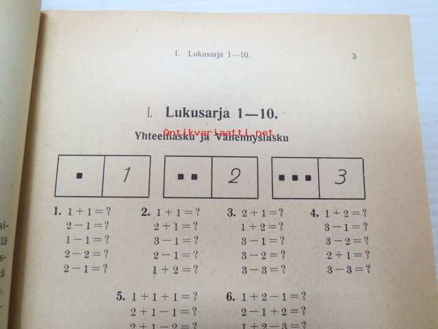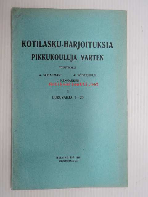 Kotilasku-harjoituksia pikkukouluja varten 1 Lukusarja 1-20, Helsinki 1918