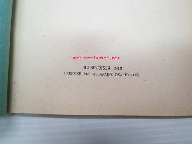| Saatavilla | 1 kpl | | Julkaisuvuosi | 1918 | | Sivuja | 34 | | Painos | 1. | | Kunto | K3 | | Sidonta/painoasu | Paperikannet | | Kielet | Suomi |