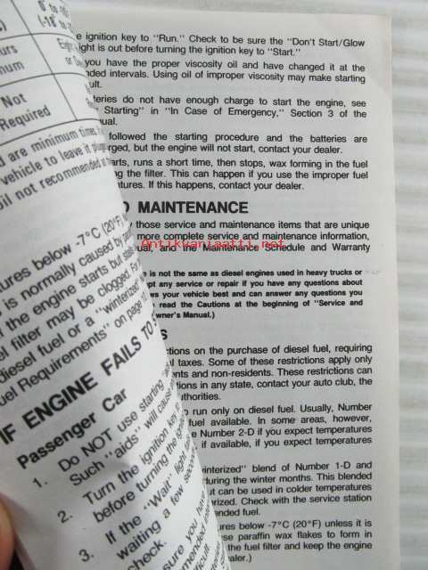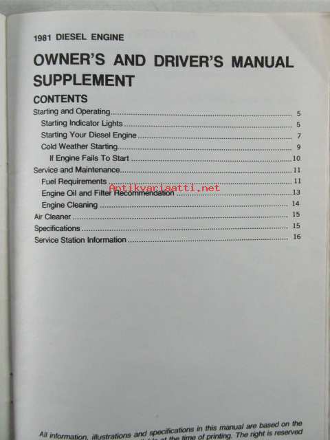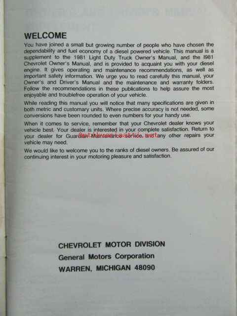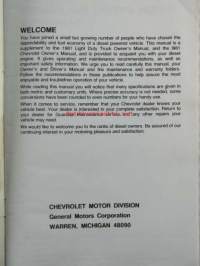 Chevrolet 1981 Owner's and Driver's Manual Diesel Engine Supplement - Omistajan käsikirjan lisäosa dieselmottorilla varustettua autoa varten