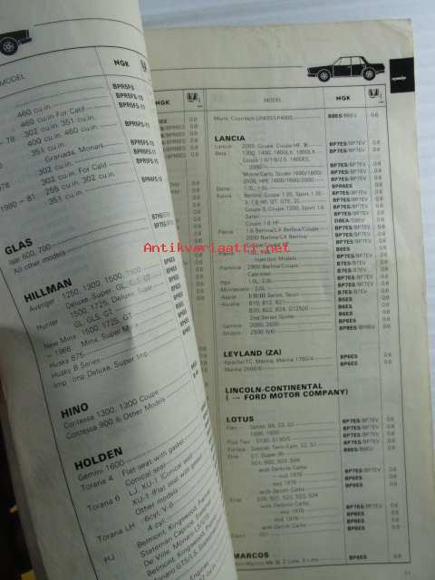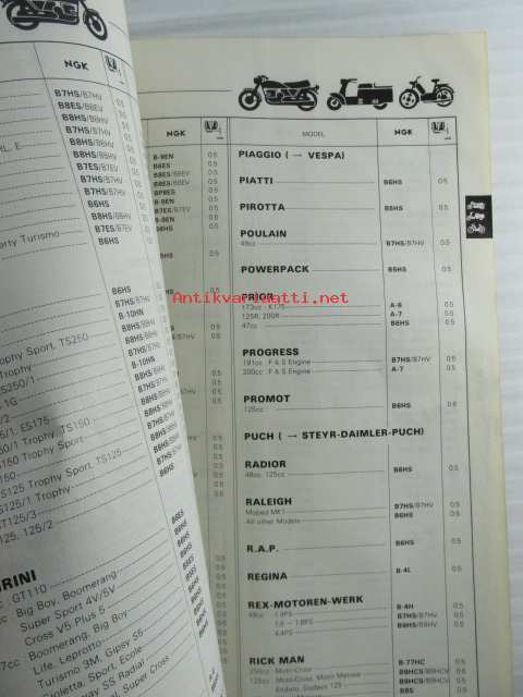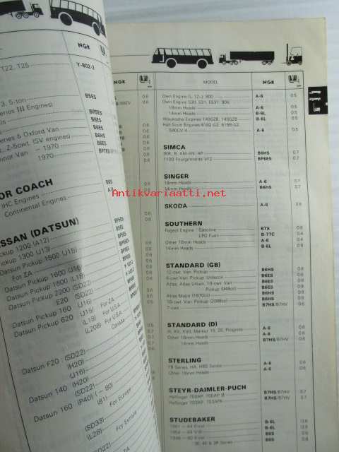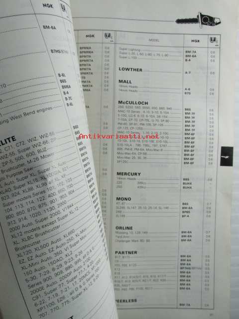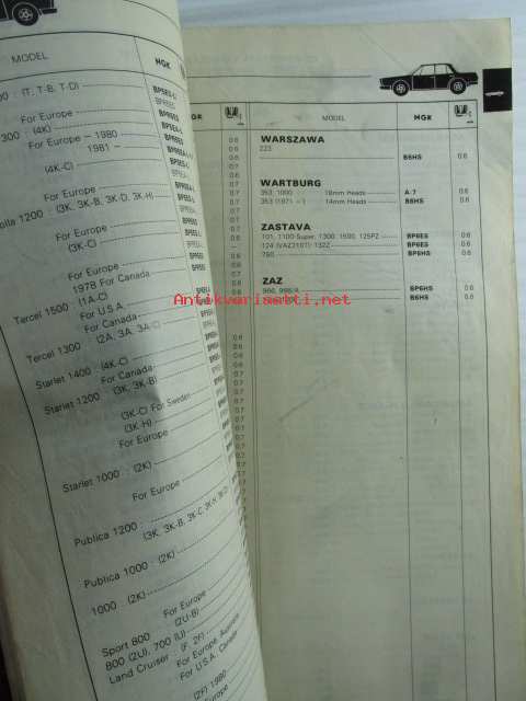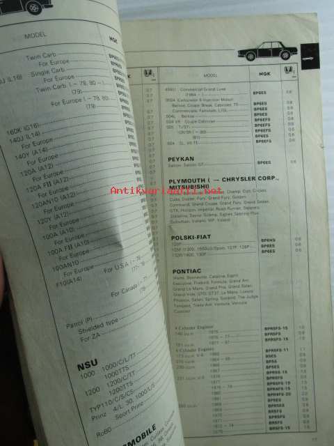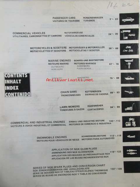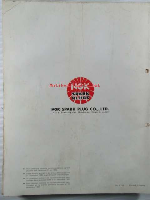 NGK Spark Plugs 1981 - sytystystulppa luettelo 1981