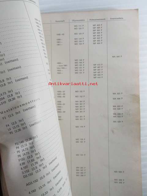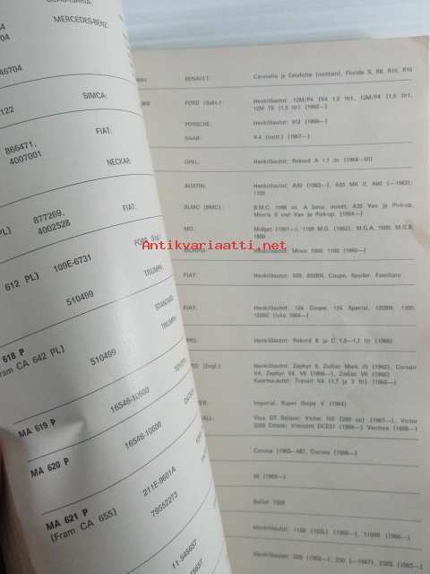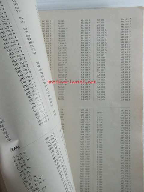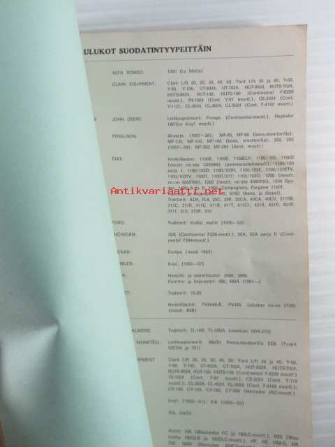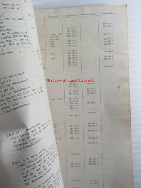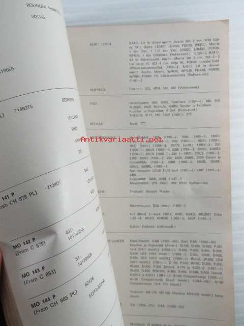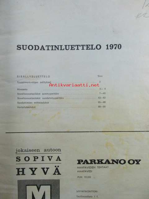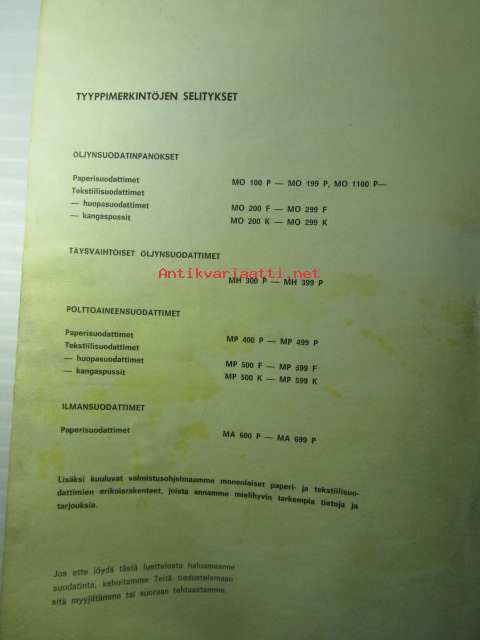 Parkano Oy, M suodatin, Suodatinluettelo 1979