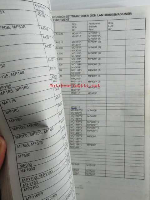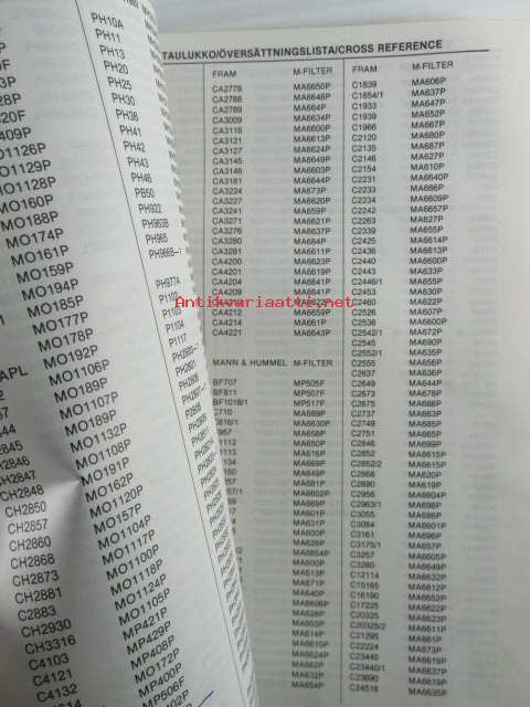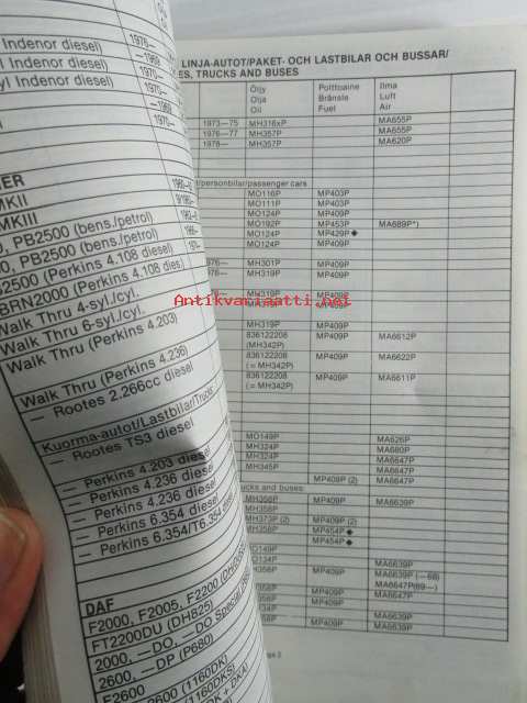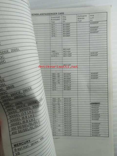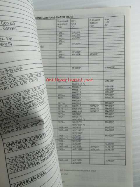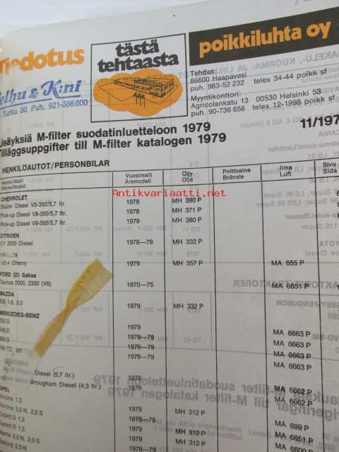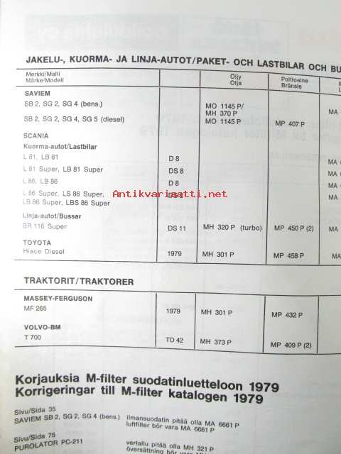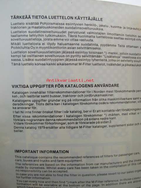 M-Filter, Suodatinluettelo 1979