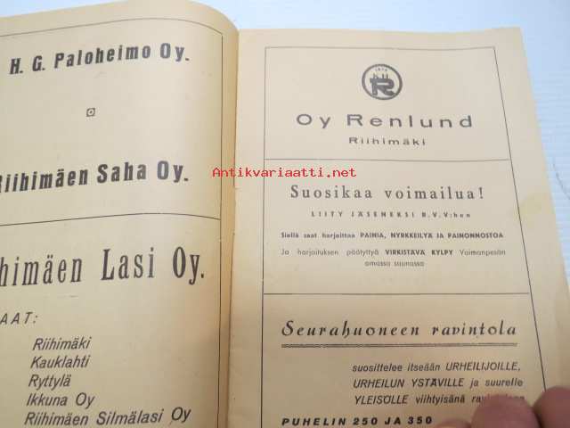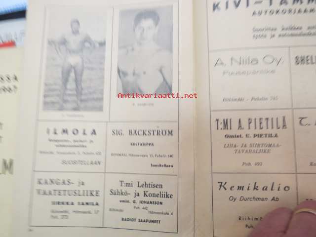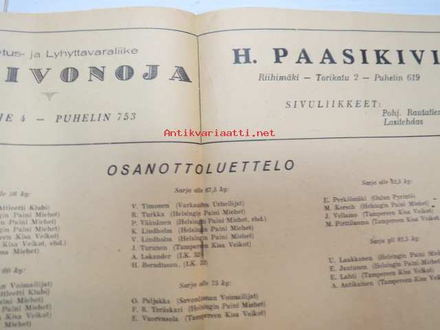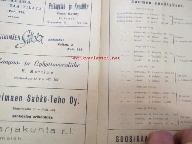 Suomen Painonnostoliitto Mestaruuskilpailut 1946 Riihimäki -käsiohjelma