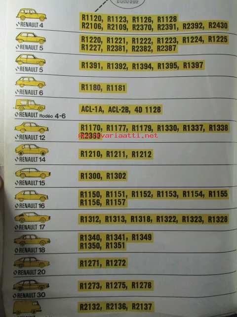 Renault 4/5/6/4-6 Rodeo /12/14/15/16/17/18/20//30 Renault Estafette - P.R. 900 1980 - Varaosaluettelo, katso sisältö kuvista tarkemmin