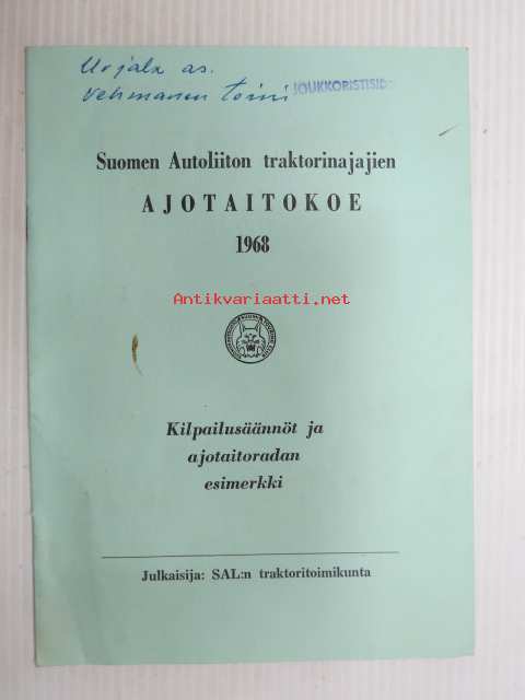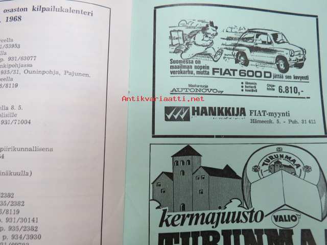 | Saatavilla | 1 kpl | | Julkaisuvuosi | 1968 | | Sivuja | 12 | | Kunto | K3 | | Sidonta/painoasu | Nidottu (pehmeäk.) | | Kielet | Suomi |