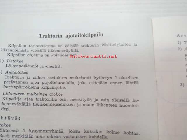 Suomen Autoliiton traktorinajajien ajotaitokoe 1968 - Kilpailusäännöt ja ajotaitoradan esimerkki