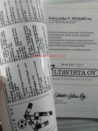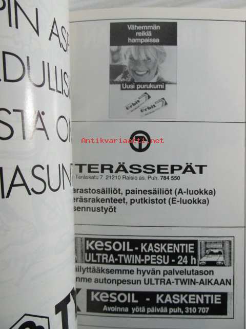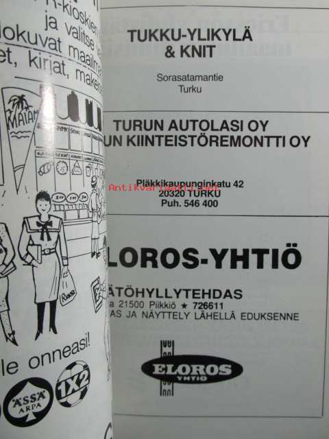 | Saatavilla | 1 kpl | | Julkaisuvuosi | 1990 | | Kunto | K3 | | Sidonta/painoasu | Nidottu (pehmeäk.) | | Kielet | Suomi |