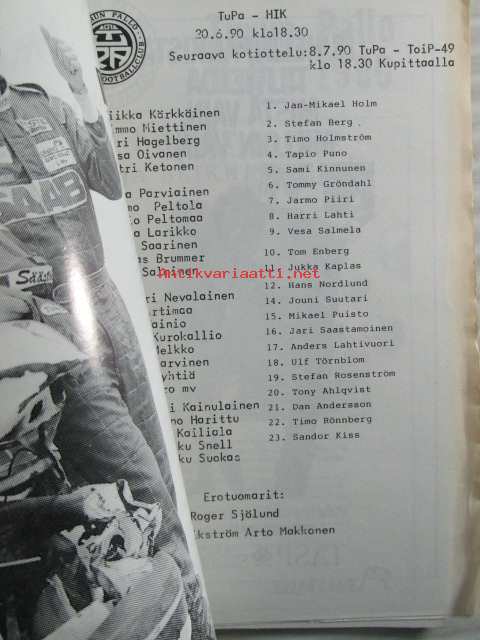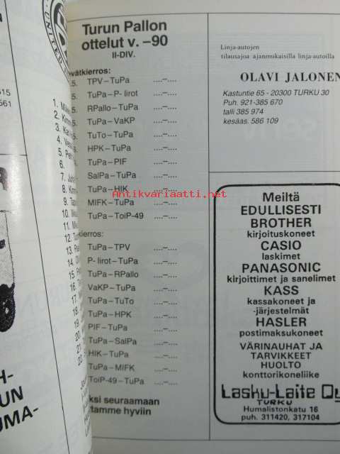 Turun Pallo II Divisioona 1990 - kausiohjelma