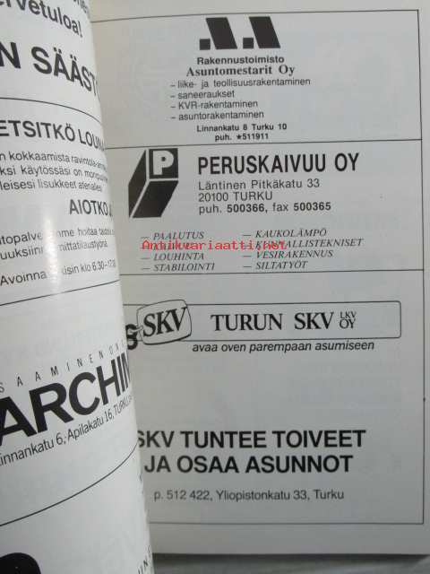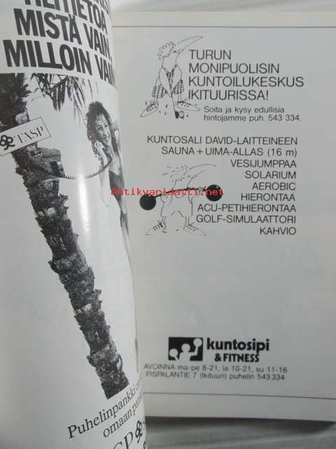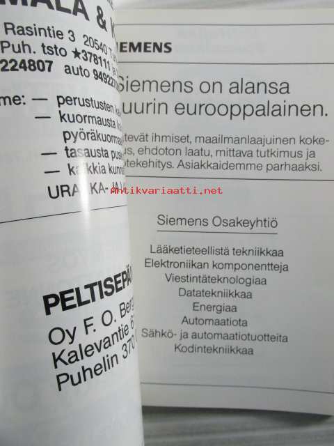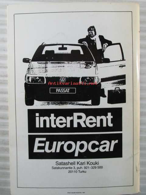 | Saatavilla | 1 kpl | | Julkaisuvuosi | 1991 | | Kunto | K2 | | Sidonta/painoasu | Nidottu (pehmeäk.) | | Kielet | Suomi |
