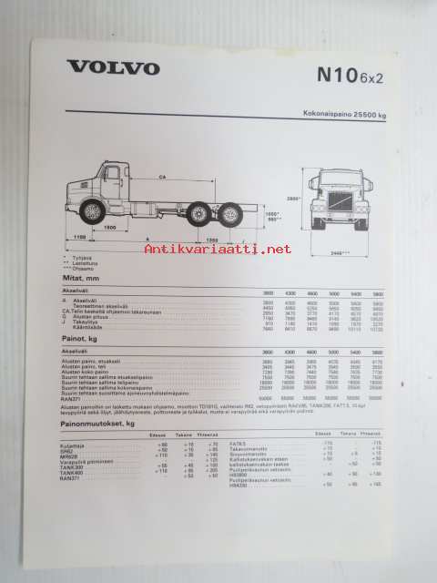 Volvo N10 6x2 -tekniset tiedot, esite