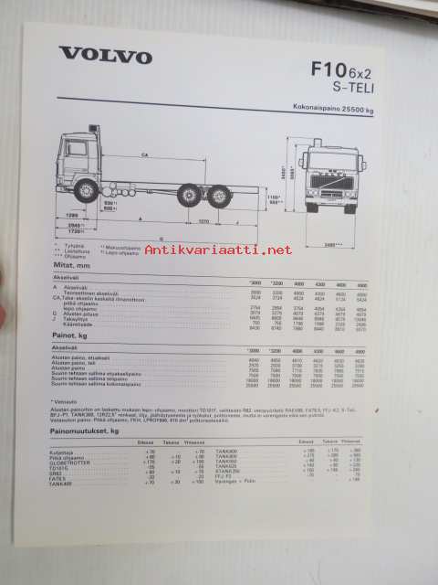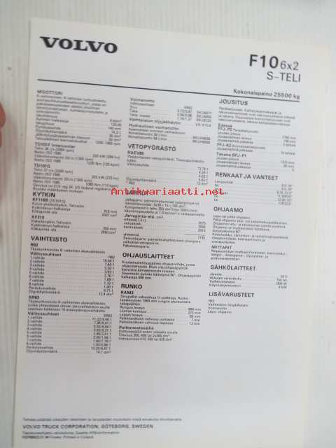 Volvo F10 6x2 S-teli -tekniset tiedot, esite