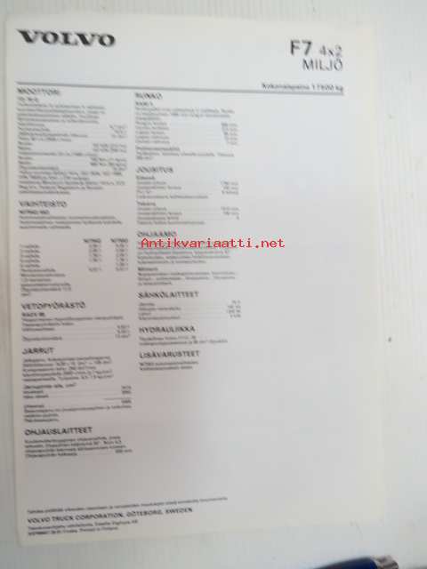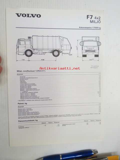 Volvo F7 4x2 Miljö -tekniset tiedot, esite