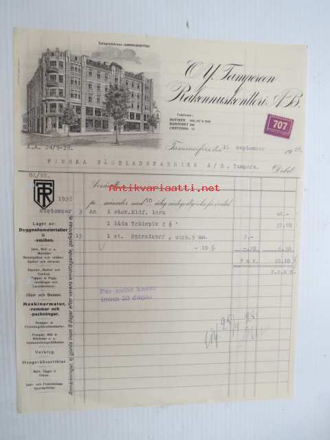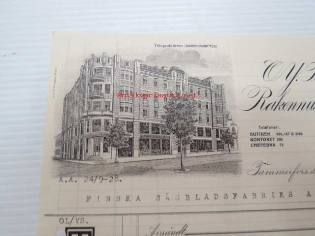 Tampereen Rakennuskonttori Oy, Tampere, 15.9.1928 -asiakirja