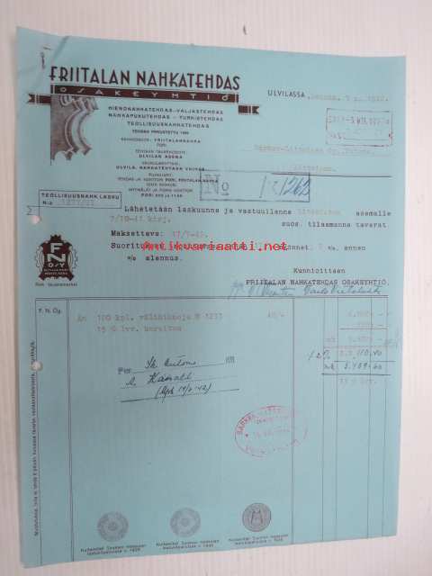 Friitalan Nahkatehdas Oy, Ulvila, 3.7.1942 -asiakirja