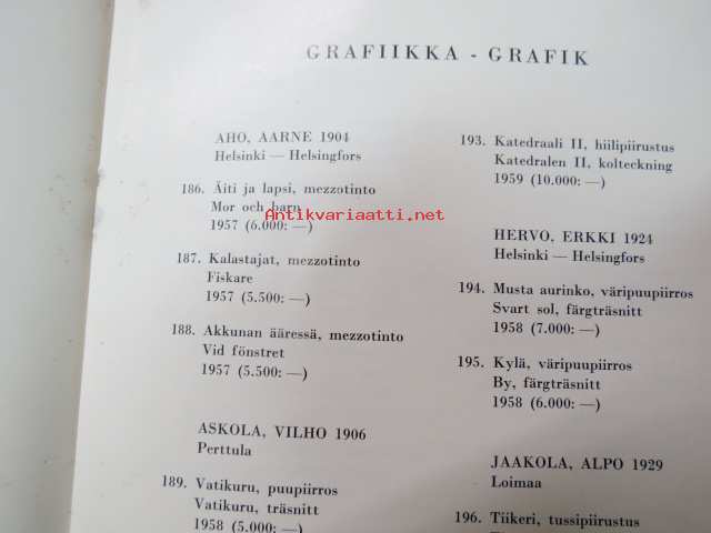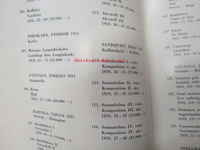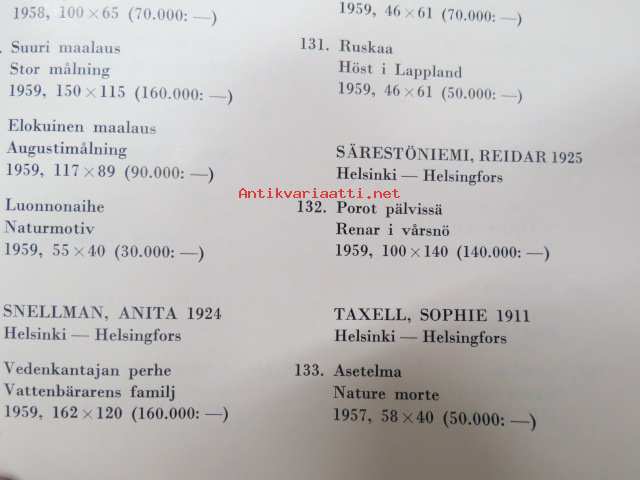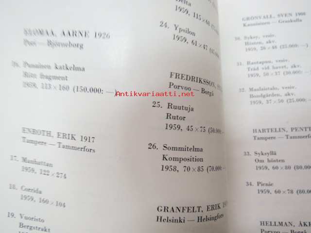 | Saatavilla | 1 kpl | | Julkaisuvuosi | 1959 | | Sivuja | 24 | | Painos | 1. | | Kunto | K3 | | Sidonta/painoasu | Nidottu (pehmeäk.) | | Kielet | Suomi, Ruotsi |