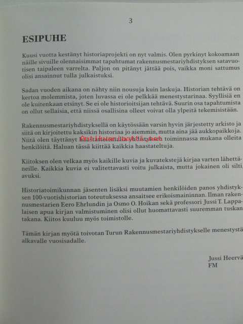 Heervä Jussi, Turun Rakennusmestariyhdistys, 199818 x 25 cm kirja.