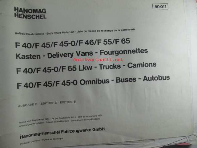Hanomag Henschel Ersatzteile-Katalog / Body Spare Parts List F 40/F 45/F 55 Kasten, F 40/F 45/F 45-0 Omnibus Edition B - Varaosaluettelo