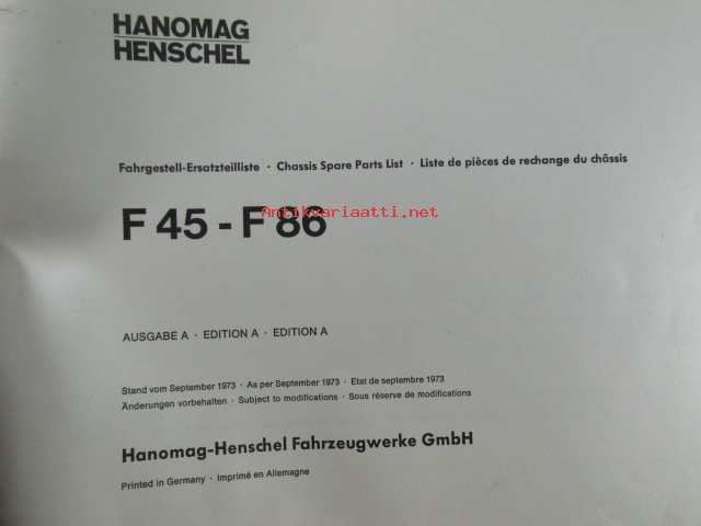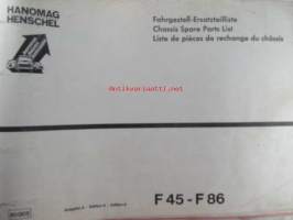 Hanomag Henschel Ersatzteile-Katalog Chassis Spare Parts List F 45-F 86, Edition A - Varaosaluettelo