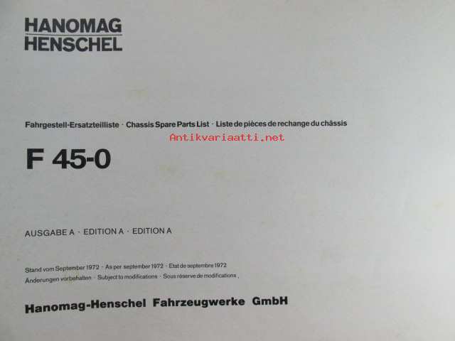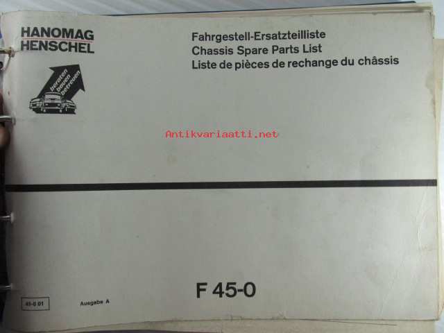 Hanomag Henschel Ersatzteile-Katalog Chassis Spare Parts List F 45-0, Edition A - Varaosaluettelo