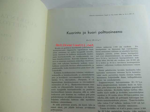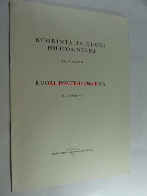 Kuorinta ja kuori polttoaineena - Rolf Wilen käännös kirjoituksesta Paperi ja Puu B:ssä 1950 nr 11 s. 352-3, Kuori polttoaineena H. Wiklund käännös