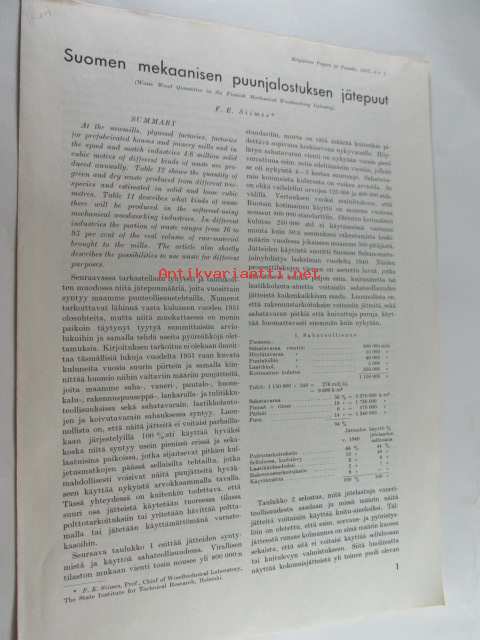 Suomen mekaanisen puunjalostuksen jätepuut, eripainos Paperi ja Puu 1952 nr 1