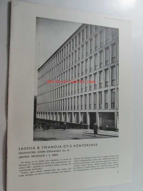 Lassila & Tikanoja Oy:s kontorshus Helsingfors Södra Esplanadg. nr 18, särtryck ur arkitekten 1936 nr 3