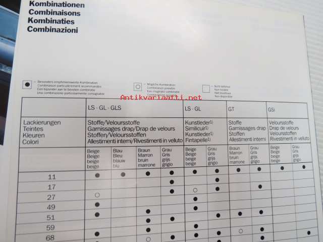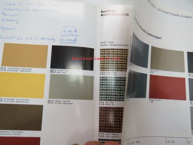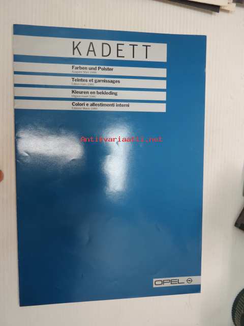 Opel Kadett Farben und Polster Ausgabe März 1986 -myyntiesite, värit ja sisustus