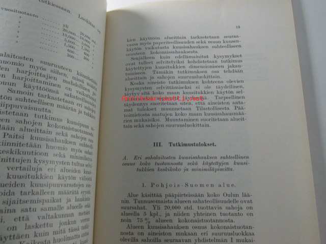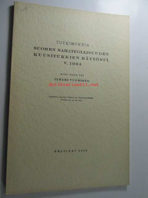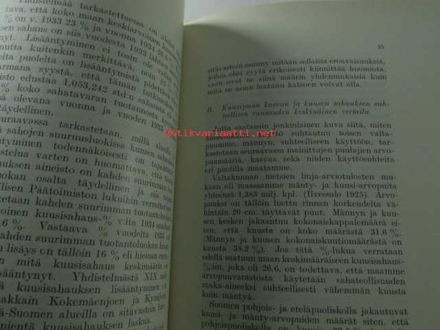 Tutkimuksia Suomen sahateollisuuden kuusitukkien käytöstä v.1934, eripainos aikakauslehti Suomen Paperi ja Puutavaralehden nr 22,23,24 1935