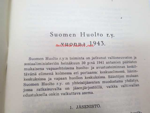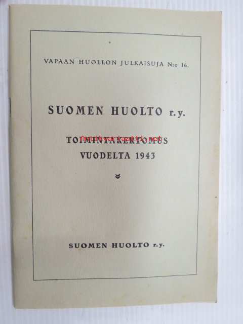 Suomen Huolto ry. - Toimintakertomus vuodelta 1943