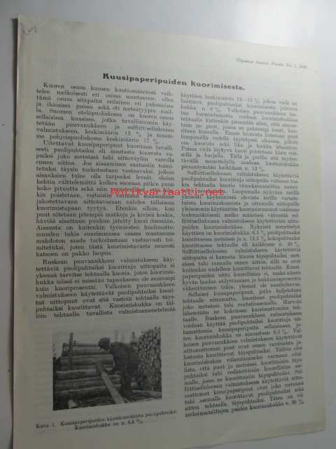 Kuusipaperipuiden kuorimisesta ylipainos Suomen Puusta 1928 nr 1