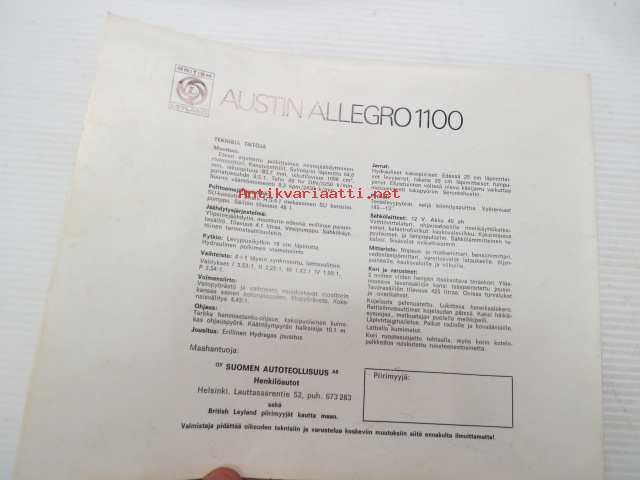 Austin Allegro 1100 sdr D/L -myyntiesite