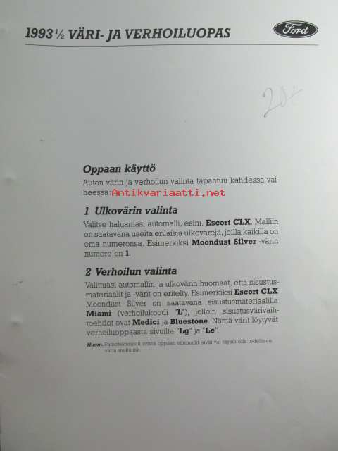 Ford Escort Väri- ja verhoiluopas 1993 1/2