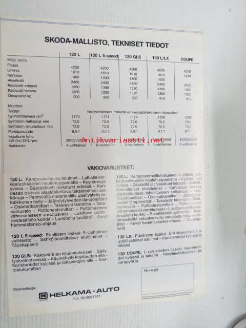 Skoda 120, 130 mallisto -myyntiesite