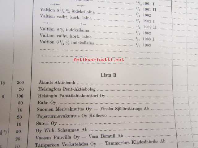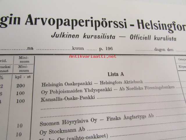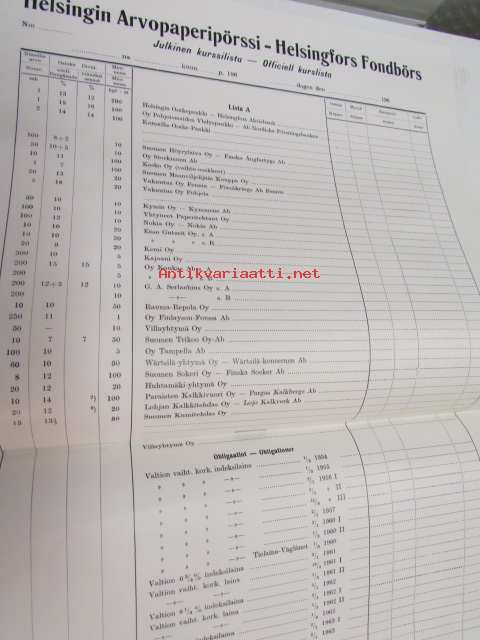 Helsingin Arvopaperipörssi - Julkinen kurssilista 1960-luvulta - Helsingfors Fondbörs Officiell kurslista - käyttämätön