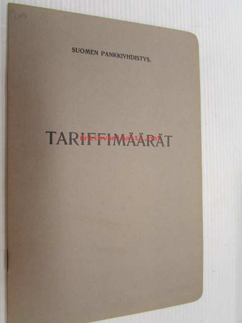 Suomen pankkiyhdistys Tariffimäärät - Suomen Pankkiyhdistyksen vuosikokouksessaan 28 p:nä lokak. 1922 jäsentensä noudatettaviksi vahvistamat tariffimäärät sovellutettavat sitovina minimimäärinä käytännössä joulukuun 1 p:stä 1922 alkaen