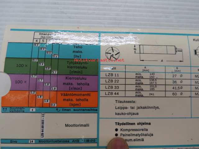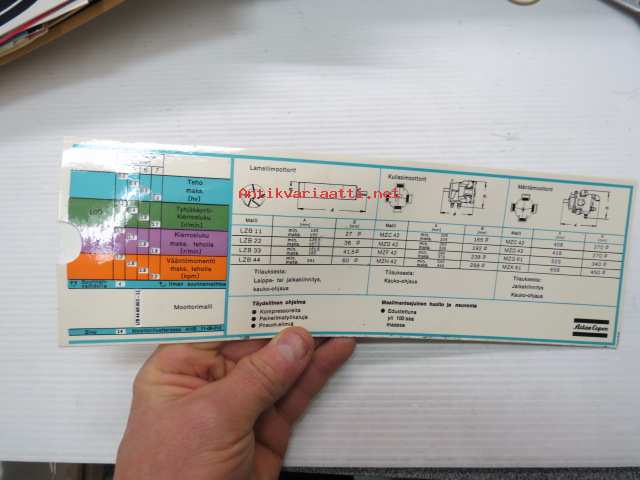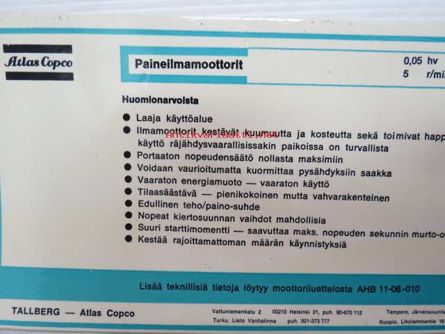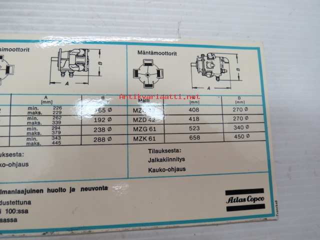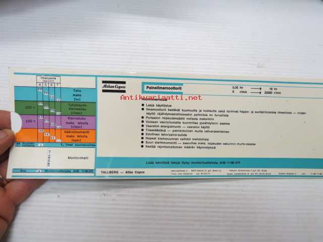 Atlas Copco paineilmamoottorit -tekniset ominaisuudet liukutaulukko