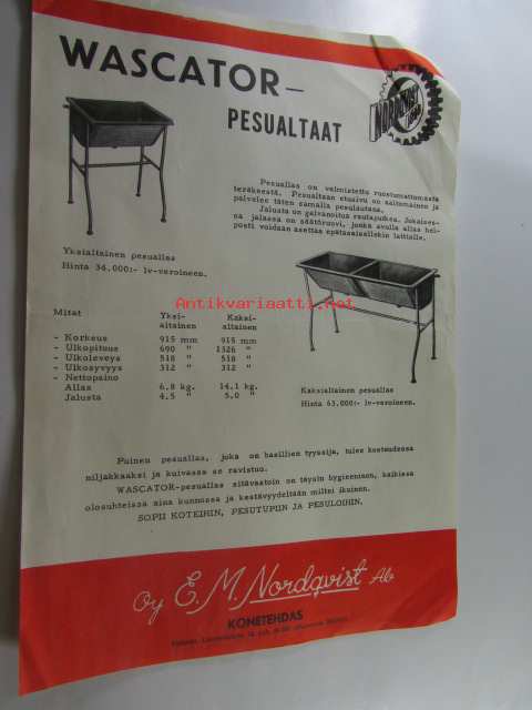 Wascator pesualtaat myyntiesite Oy E.M. Nordqvist Ab Konetehdas