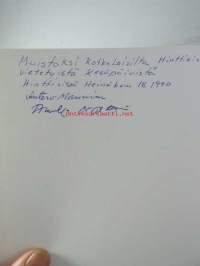 | Saatavilla | 1 kpl | | Julkaisuvuosi | 1987 | | Sivuja | 119 | | Kunto | K3 | | Sidonta/painoasu | Kuvitettu kovakantinen | | ISBN | 951-95558-3-8 | | Kielet | Suomi |