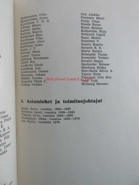 | Saatavilla | 1 kpl | | Julkaisuvuosi | 1979 | | Sivuja | 84 | | Painos | 1. | | Kunto | K2 | | Sidonta/painoasu | Sidottu (kovak.) | | ISBN | 951-95286-2-8 | | Kielet | Suomi |