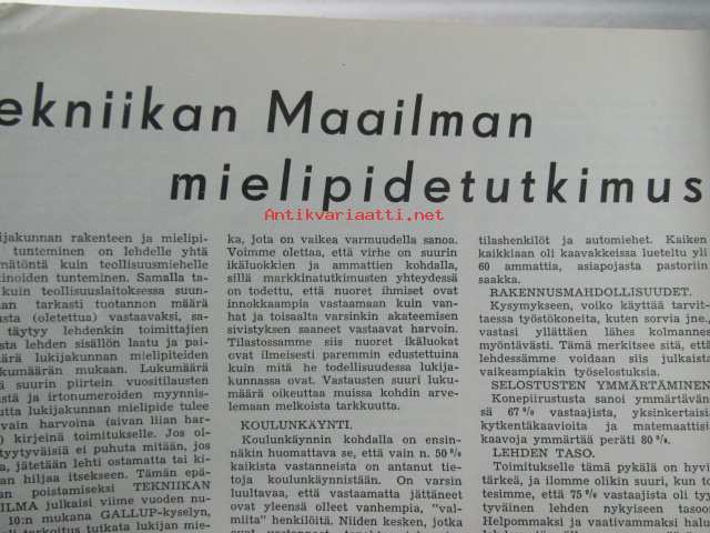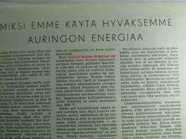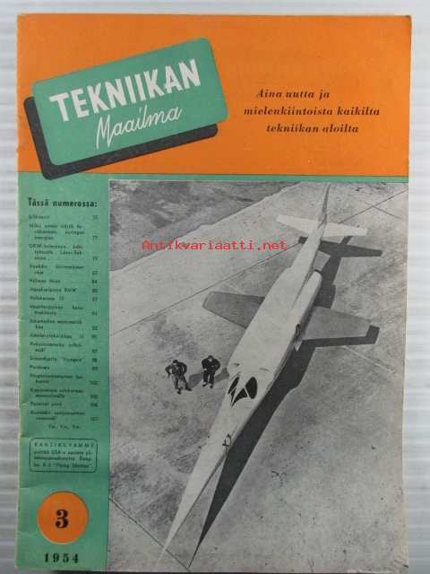 Tekniikan Maailma 1954 nr 3, sis. mm. seur. artikkelit / kuvat / mainokset; Kansikuvassa yliääninopeuskone Douglas X-3, Kopioiminen valokuvausmenetelmällä, Kotitekoinen porakone, Valokuvaus osa 4 kehitys, Koeajossa itäsaksalainen BMW 51 ja Hillman Minx, Siimaohjattu Vampire, Ulatoiminnan kehityksestä Länsi-Saksassa, Aurinkoenergian hyväksikäyttö, Tutkanopeusmittari lentotukialuksilla, ym. katso sisältö kuvista tarkemmin.21 x 29 cm.
