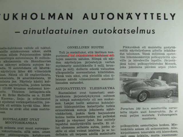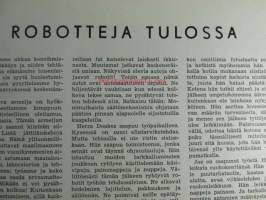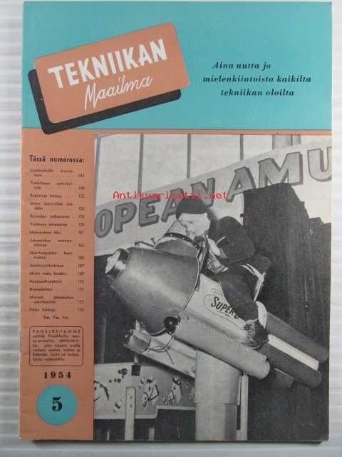 Tekniikan Maailma 1954 nr 5, sis. mm. seur. artikkelit / kuvat / mainokset; Kansikuvassa Frankfurtin messu-uutuus sähköraketti, "Minisub" jokamiehen sukellusvene, Omatekoinen synkronisaattori kameraan, Kantoaalto puhelin, Mekaanisesti ohjattava käsi, Valokuva sekunnissa, Keimolan radioasema, Miten piirrosfilmi tehdään, Robotteja tulossa, Tukholman autonäyttely ainutlaatuinen autokatselmus Porsche 100 - Chevrolet Corvette - Ferrari 250 Europa - Cadillac 62 Sedan - Citroën Berline 2 CV - Alfa Romeo 900 - De Soto Firedome Sportsman, ym. katso sisältö kuvista tarkemmin.21 x 29 cm.