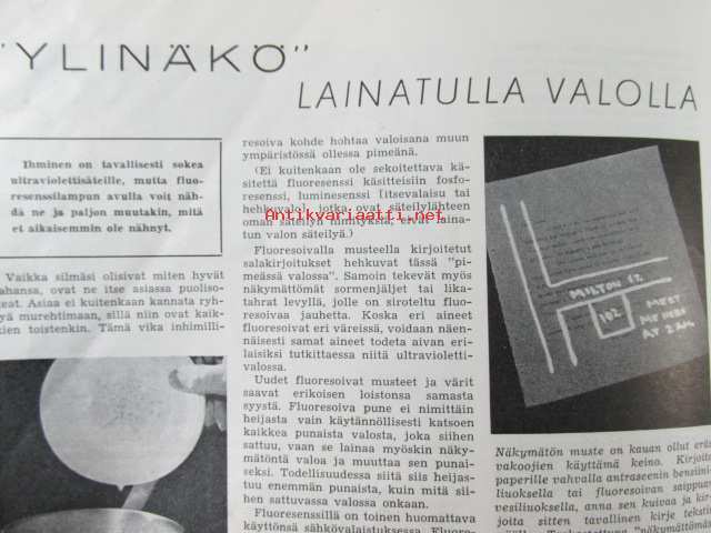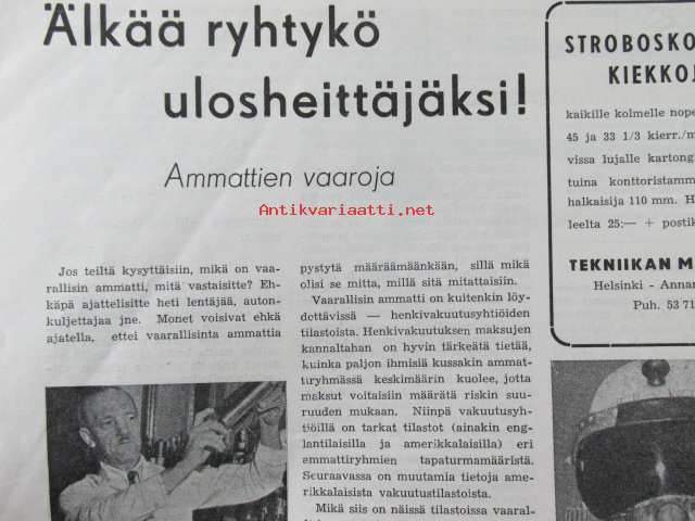 Tekniikan Maailma 1954 nr 9, sis. mm. seur. artikkelit / kuvat / mainokset; Kannessa Pariisin Orly lentoaseman tutka-antennia, Tulilintu - 1. amerikkalainen turpiini auto, Rakennamme ula-antennin, Yksinkertainen välimatkamittari, Neulanreikäkameran rakennuspiirustus, Pylväs kovaääninen - ihanteellinen joka kodin äänentoistaja, Kaitafilmaus valtaa alaa, VX Koekuvassa Exakta Varex VX, Koeajossa Dodge Coronet -54, Liitokopteri - maailman pienin lentokone, Patenttiasiat, Uusi erikoisnopea infrapunafilmi, Kuuluuko tulevaisuus lentäville kolmioille Horten 13 B - Boulton Paul P 111, Saab 210 - Convair XF-24, Merivesi käyttövoimana, Tekniikka jyllää - Linnanmäen huvipuisto kulissien takana, katso sisältö kuvista tarkemmin.21 x 29 cm.