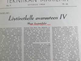 Tekniikan Maailma 1954 nr 9, sis. mm. seur. artikkelit / kuvat / mainokset; Kannessa Pariisin Orly lentoaseman tutka-antennia, Tulilintu - 1. amerikkalainen