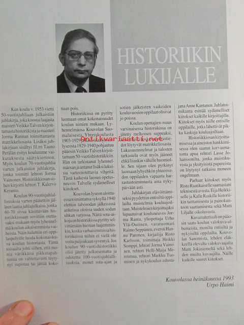Johansson Lasse &al., Kouvolan Lyseon Juhlakirjatoimikunta, 199321 x 31 cm.