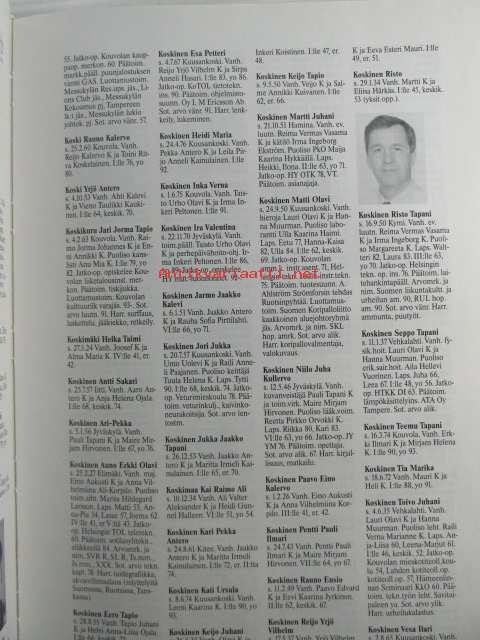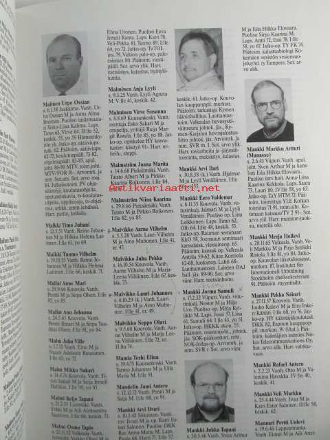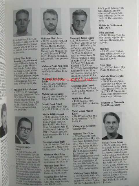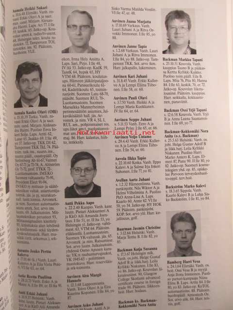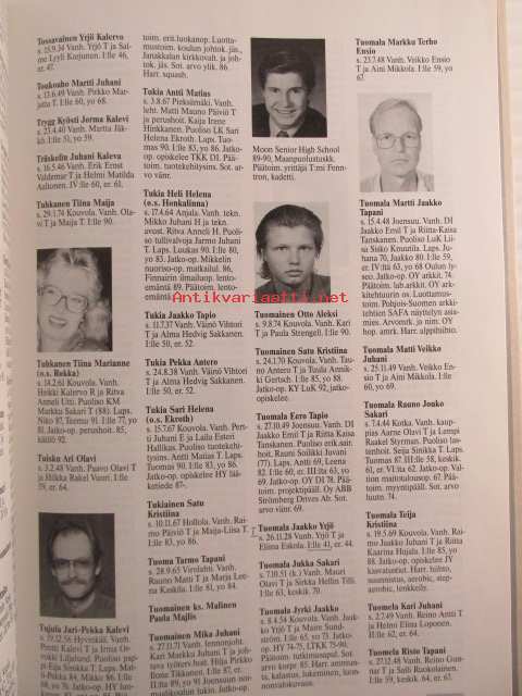 | Saatavilla | 1 kpl | | Julkaisuvuosi | 1993 | | Sivuja | 353 | | Painos | 1. | | Kunto | K3 | | Sidonta/painoasu | Sidottu (kovak.) | | ISBN | 952-90-4913-7 | | Kielet | Suomi |
