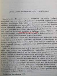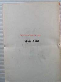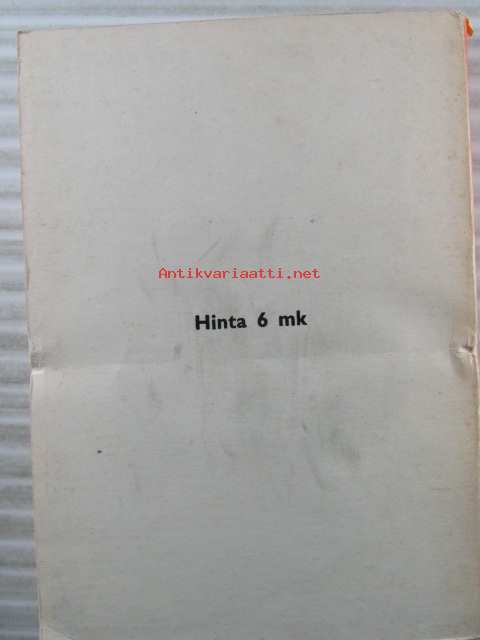 | Saatavilla | 1 kpl | | Julkaisuvuosi | 1965 | | Sivuja | 261 | | Painos | 1. | | Kunto | K2 | | Sidonta/painoasu | Nidottu (pehmeäk.) | | Kielet | Suomi |
